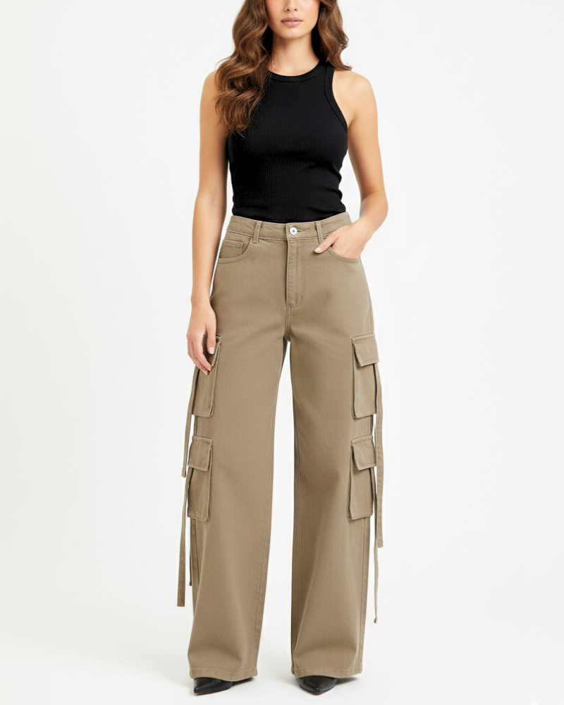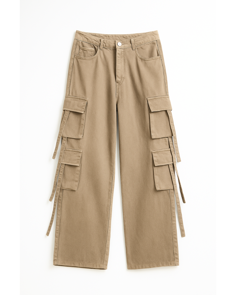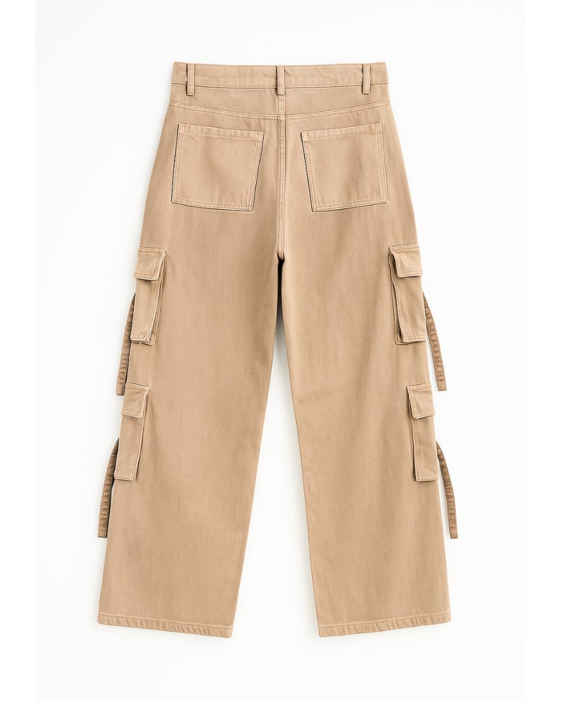 Made with premium heavy-weight cotton, these cargo jeans feature a straight wide-leg silhouette paired with six oversized flap pockets and long side straps—giving you a rugged, high-fashion edge that stands out effortlessly.