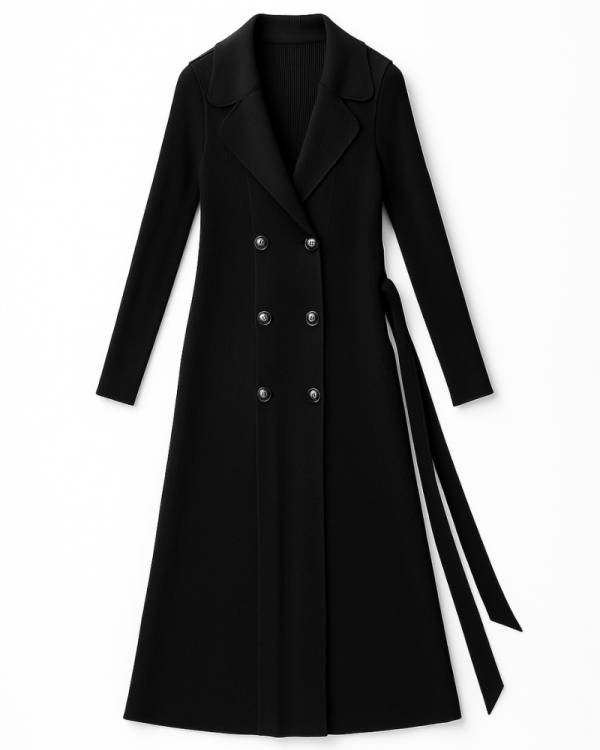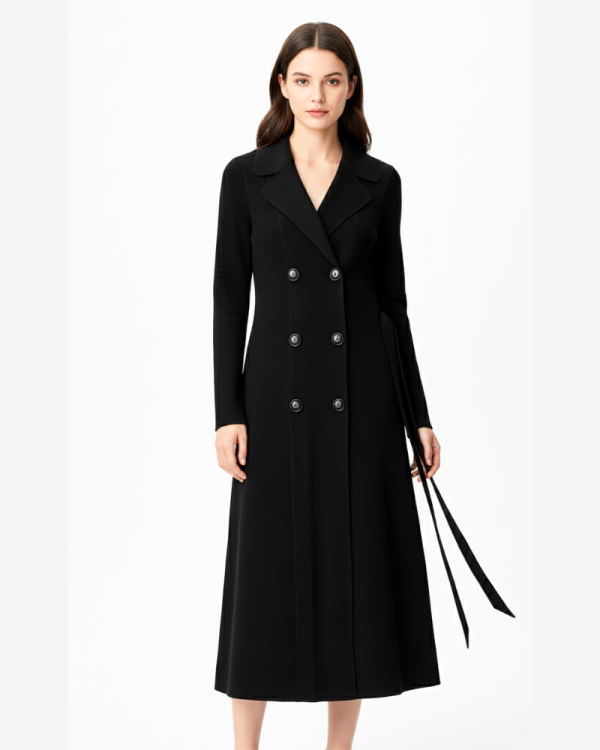Command attention with the timeless sophistication of the Noir Luxe Trench Dress — a perfect blend of boldness and elegance. Crafted with premium structured fabric, this dress embodies modern femininity with its longline silhouette and double-breasted detailing. The tailored fit and self-tie belt sculpt your shape gracefully, making it your go-to piece for chic evenings or formal outings.